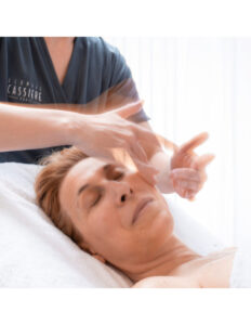 Nettoyage, gommage, vapeur, massage liftant du visage et du décolleté, double masque haut et bas du visage, et en option, le massage intra-buccal, une technique unique agissant en profondeur sur les muscles pour un effet liftant naturel dès la première séance.
